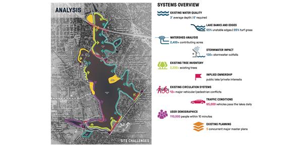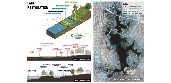 美国巴吞鲁日湖区总体规划_3541960美国巴吞鲁日湖区总体规划,区域规划,2016ASLA分析及规划类荣誉奖,SWAGroup,CARBOLandscapeArchitecture设计:SWA Group、 CARBO Landscape Architecture地点:美国奖项:2016 ASLA分析及规划类荣誉奖生活在路易斯安那与巴吞鲁日的人们与水有着紧密而独特的联系。人们的生活与水息息相关,无论是好是坏,都不可分离。如今,人们正试图利用这种紧密的连接,重振巴吞鲁日城内日渐衰败的标志性水域往日的风采。人们在危机中看到了转机,并寄望以巴吞鲁日湖项目实现新的可能性。位于巴吞鲁日市中心,总面积高达275英亩的6个湖泊首尾相连。往日延绵的柏树沼泽已被改造为开阔的水面。然而,由于远远不足的湖水深度,持续的泥土沉积,上升的水温、溶氧水平和养分负荷迅速导致了水质的急剧下降,在过去的数十年间不见好转甚至日益恶化。而基于坚实可靠的生态基础,来自SWA景观团队的总体规划利用生态修复技术和自然系统将健康的生活方式重新带回湖区,为人们找到与水共存的平衡点。