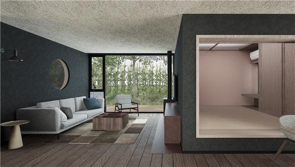 崇明岛民宿 Black House_3542961崇明岛民宿 Black House,民宿,住宅,居住住宅,小型建筑,生活,小型建筑案例,室外小型建筑,室外小型建筑,室外小型建筑,小建筑外形,小体量建筑,室外小型建筑,小体量该民宿位于上海市崇明区前哨村,由空间里设计完成,建筑面积为84平方米。三个有高窗的单坡屋顶小房子和一个入口半户外空间,围合出了平屋顶的起居室,餐厅、厨房、玄关、客厅各自朝向东南西北四个方向,窗外分别是竹林、菜地、田地、小河四种不同的景色,落地大窗外让和室内紧密相连,在室内也能感受到乡村自然的朴质,房间仅有高窗的天光进入,确保私密性的同时,柔和的光线让人安静的独处和休息,小黑屋是个和自然对话的空间媒介,让来度假的客人在居住同时充分体验到乡村的自然。