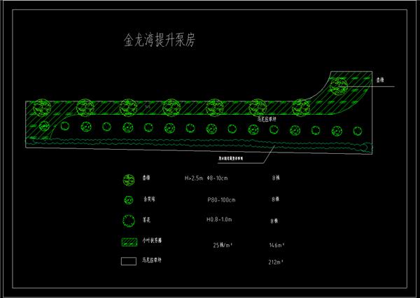 水厂绿化平面图、办公楼间景观、绿化带、植物配置表、dwg