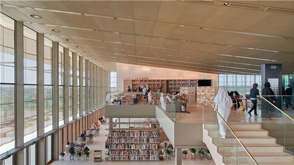 智慧之家_3620981智慧之家,公共建筑,文化,商业设计:Foster + Partners地点:阿拉伯沙迦规模:40386平方米浮动屋顶由四个核心支撑,这四个核心还包含所有的内部空间和服务空间,形成了一个大的无柱地板。最靠近入口的两个核心包含大型雕塑楼梯,引导人们上到夹层楼层。楼上有一系列悬挂在中央庭院上方的吊舱空间,这些空间既提供安静的协作空间,也提供展览区和阅读室,包括祈祷室和女性专用区域。