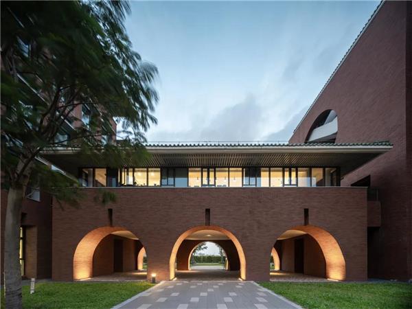 华南理工大学广州国际校区一期工程(公共实验楼)_3677684华南理工大学广州国际校区一期工程(公共实验楼),大学建筑,教育建筑,大学,教学楼,大学教学楼,华南理工大学来源:华南理工大学建筑设计研究院项目位置:广州市番禺区南村镇总用地面积:41479 ㎡总建筑面积:54941.4㎡设计时间:2018年竣工时间:2019年设计单位:华南理工大学建筑设计研究院有限公司设计紧扣校区“合璧”理念,传承华工老校区红砖、绿瓦、庭院、中庭等空间场景,其类型化转译,通过 “L”型体量围合出中央内庭院和朝向河面打开的半围合庭院,外加以点式建筑体量,形成高低错落组合的建筑群体。