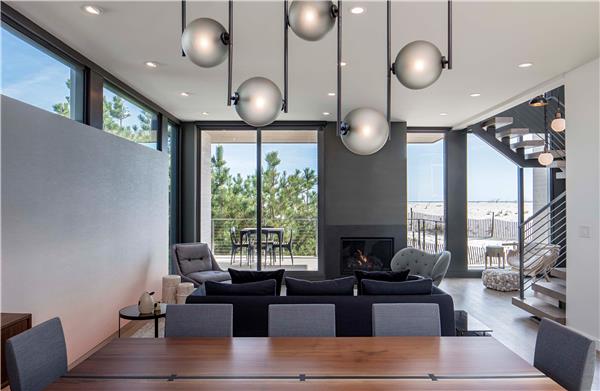 海滩天堂住宅_3857181海滩天堂住宅,住宅,别墅我们的海滨避风港之家坐落在新泽西州大西洋沿岸的一块狭长地段上。我们建造了一座开放且光线充足的房子,充分利用了其美丽的环境,同时遵守了法律规定的严格的面积和高度限制。这栋房子可以舒适地容纳一个五口之家。上层设有面朝大海的主卧套房,而每个孩子都有自己风格独特的“船舱”。下层包括客房/办公室、休息室、高架热水浴池区和带厨房的宽敞起居空间。所有这些都恰好适合其紧凑的 2,500 平方英尺的外壳。房屋的建造采用了造船技术。屋顶完全由玻璃纤维制成,而外部组件则由不锈钢制成。窗户上的玻璃具有最高的飓风等级。外部使用两种类型的雪松,为房屋提供了对比鲜明的雕塑形式。建筑师施佩克特·哈普曼结构Dominick R. Pilla 副教授建造罗尔夫·戴默勒 (Rolf Demmerle),戴默勒建筑商摄影塔格特·索伦森设计公司介绍:Specht Novak 成立的愿景是打造优雅、舒适、永恒的建筑,这些建筑植根于其所处的独特环境,并由居住者的性格所塑造。该公司被 Architizer 评为“美国 100 家最佳建筑和设计公司”之一,还获得了众多荣誉,包括美国建筑师协会、德克萨斯州建筑师协会和 Luxe 颁发的奖项。