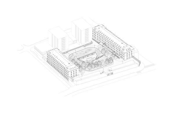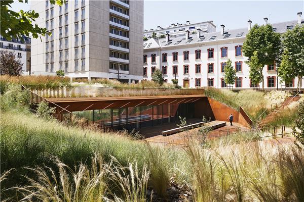 军营改造的巴黎第一法律大学_3860346军营改造的巴黎第一法律大学卢尔辛军营位于巴黎第 13区 ,周围是一个阅兵场,其军事建筑建于 1875 年。该规划要求包含巴黎第一大学的一部分功能:图书馆、露天剧场、教室和办公室。阅兵场保留了其统一和象征性的功能,它倾斜成一个景观广场,突出了通往交叉画廊和圆形剧场的通道。阅览室和教室利用其空间品质(楼层高度、材料质量)的所有潜力,融入现有环境。设计公司介绍:ChartierDalix 成立于2008年,他们的作品荣获多项奖项。2019 年,创始人Frédéric Chartier 和 Pascale Dalix 被法国文化部授予艺术和文学骑士称号。