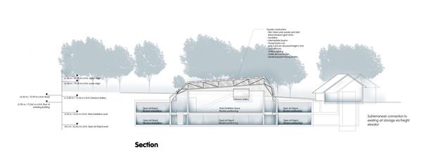 SCHAUMAGAZIN BRAUWEILER-建筑设计_412976文化中心,设计,建筑,文化,人文建筑,建筑设计该计划是这个相当新的建筑类型概念的指导力量:“Mies van derRohe vs. John Soane爵士” - 一个Miesian大厅,一个“通用空间”,周围是开放的橱柜空间,参考着名的展览伦敦约翰索恩爵士博物馆的布局。该组织非常像一个阅读室,周围是经典图书馆布局的书库。它使自己完美地符合这个博物馆和存储建筑的目的。百分之八十的建筑质量是在地下组织的。